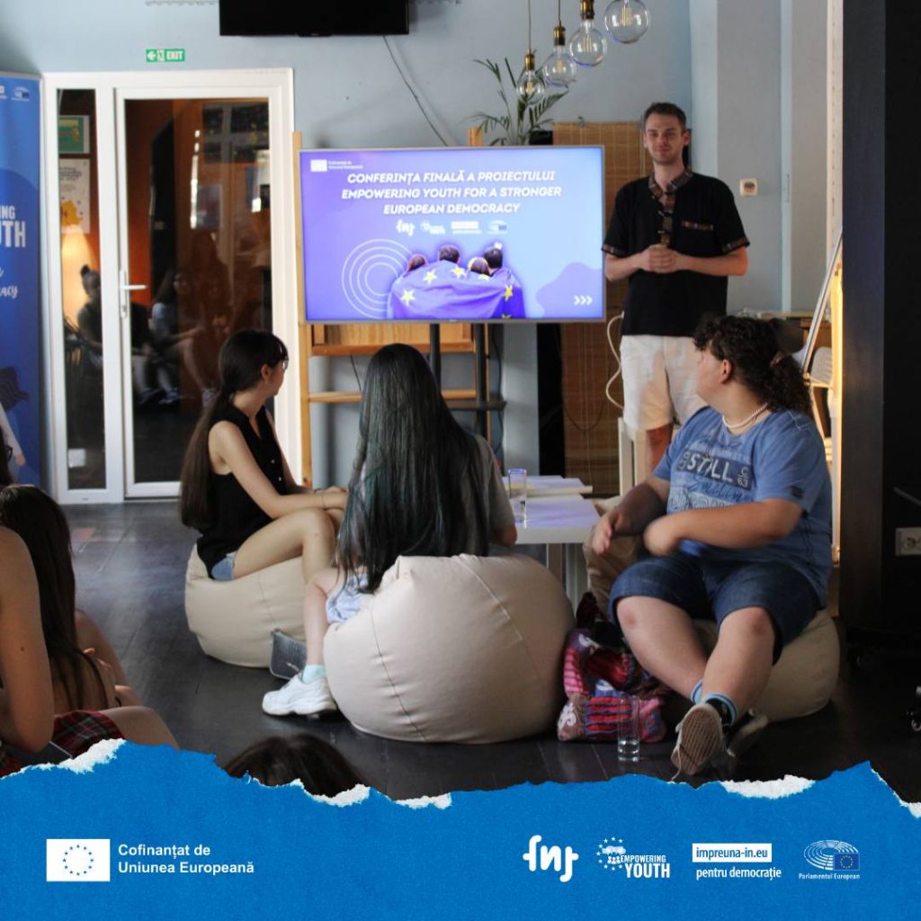 - Networking și colaborare: Reprezentanți ai Biroului de Legătură al Parlamentului European în România și alte organizații de tineret s-au alăturat conferinței, facilitând conexiuni valoroase și împărtășind rezultatele proiectului.