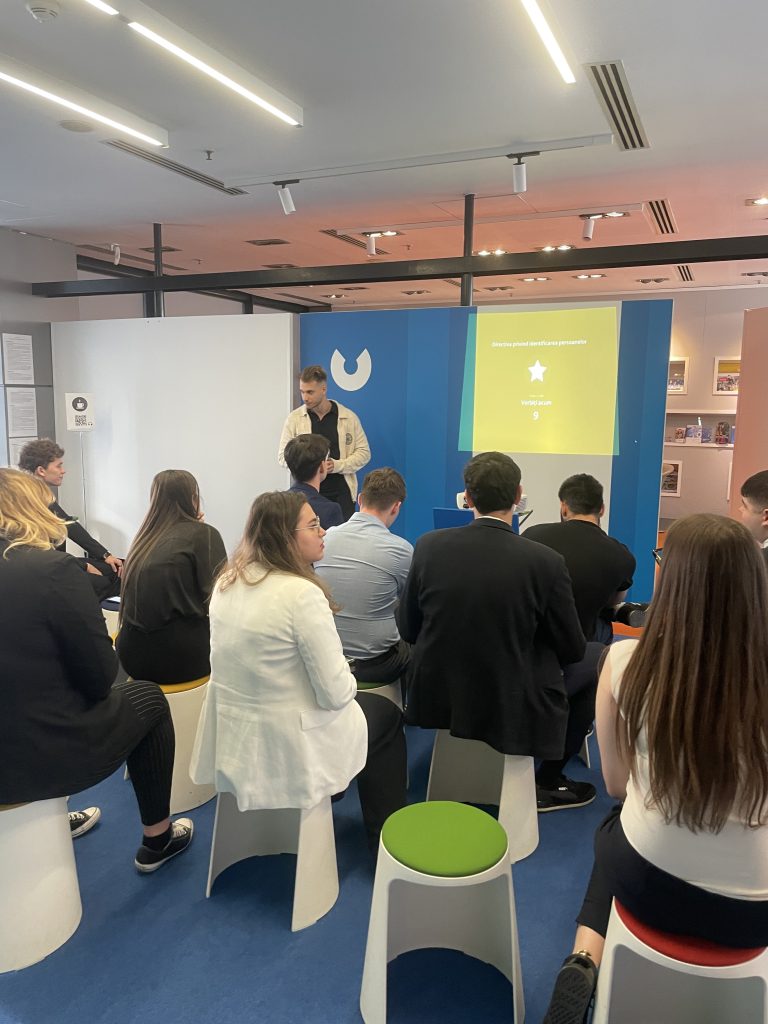 Un alt moment remarcabil al implicării bucureștene în proiect a fost colaborarea cu studenții asociației Security Studies and World Politics. Împreună cu aceștia, am experimentat cum funcționează procesul legislativ european și am discutat în detaliu despre importanța participării active în viața democratică a Uniunii Europene. Prin aceste activități, tinerii nu doar că și-au îmbogățit cunoștințele despre mecanismele legislative ale UE, dar au fost și motivați să devină actori activi în procesul democratic, înțelegând mai bine cum pot influența deciziile care le afectează viitorul.